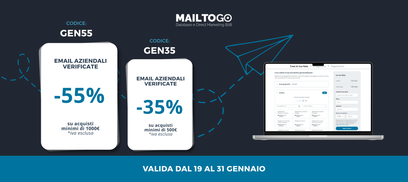Oltre 40 settori. 500.000 anagrafiche solo per l’Italia (6 milioni per l’estero) per potenziare la tua attività di direct marketing